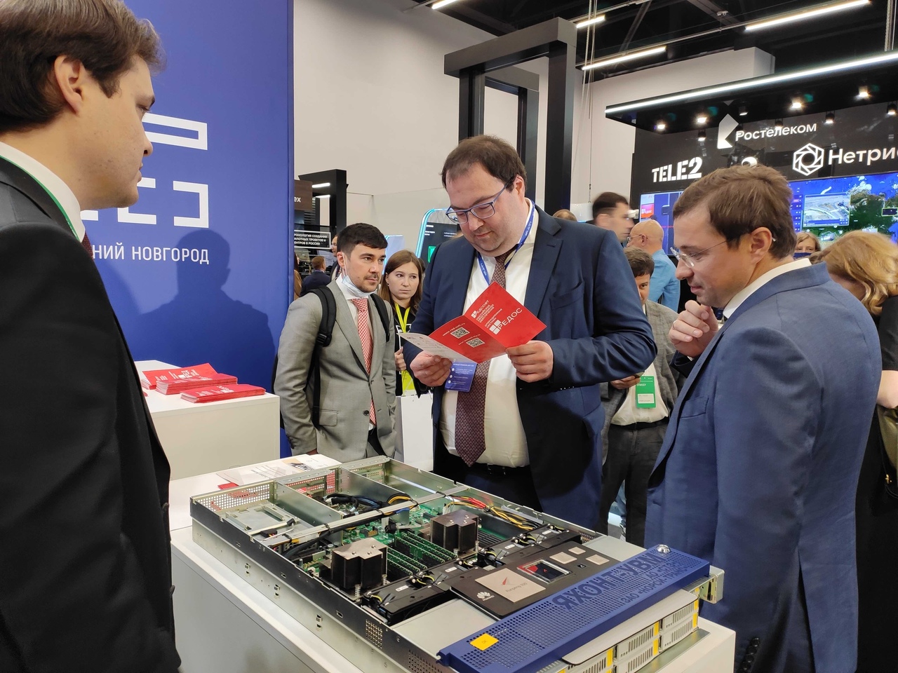 During the official tour the stand was visited by M. I. Shadaev, Minister of Digital Development, Communications and Mass Media of the Russian Federation. The specialists told about the capabilities of RED OS and compatibility with the Taishan server.