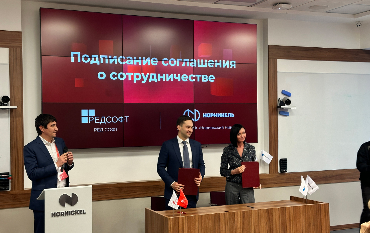 Российский разработчик «РЕД СОФТ» и ПАО «ГМК «Норильский никель» заключили соглашение о сотрудничестве. Подписантами выступили генеральный директор РЕД СОФТ Максим Анисимов и вице-президент по информационным технологиям «Норникеля» Лиана Ермишина.